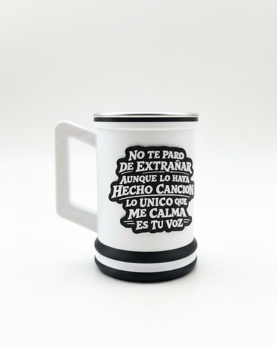 Este chop personalizado 3D es un producto exclusivo, pensado para quienes buscan un vaso único y completamente a pedido. Cuenta con un vaso interior de aluminio de 500 cc, combinado con una estructura exterior impresa en 3D que permite múltiples opciones de personalización.